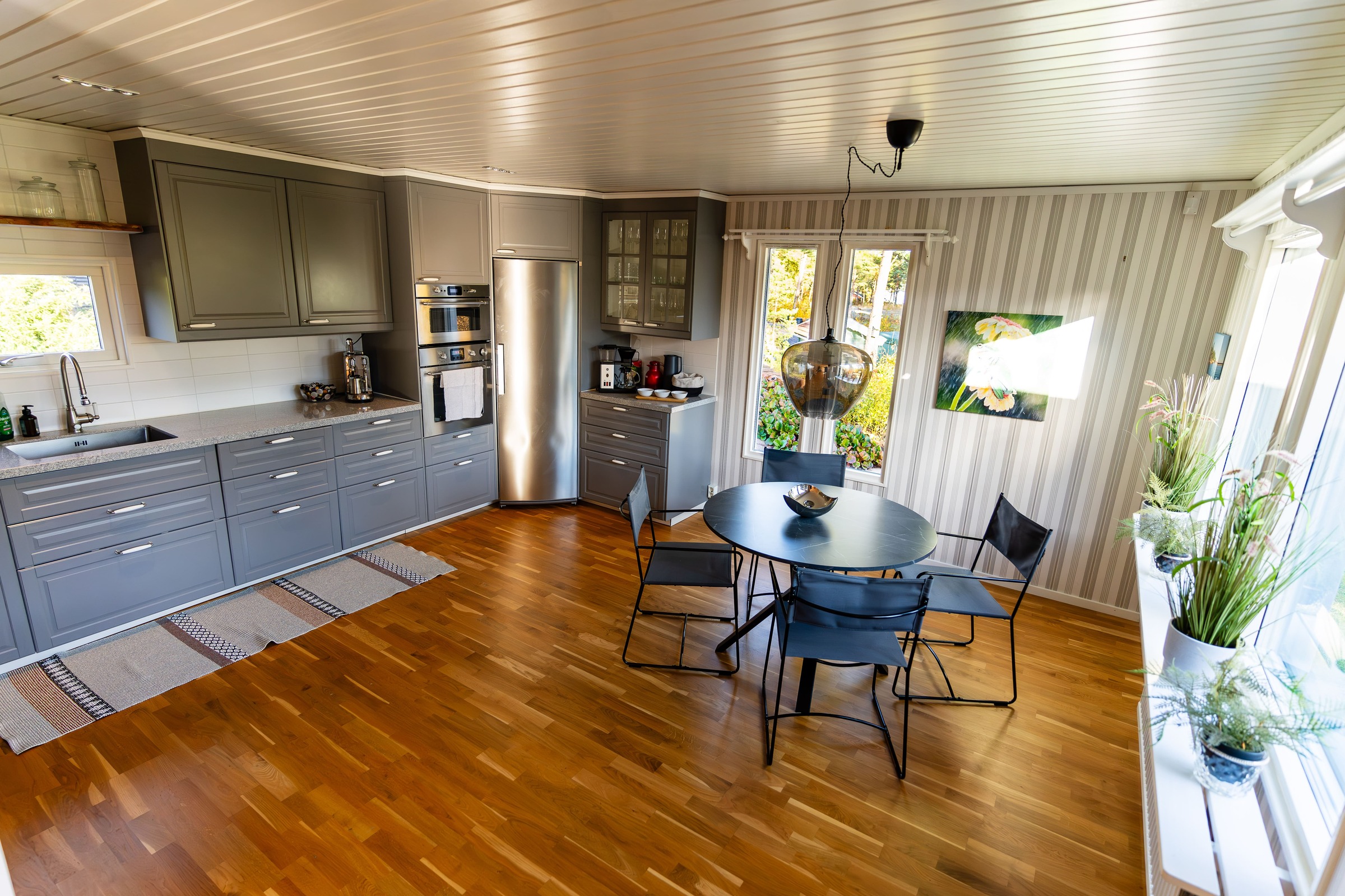 Möglichkeiten zur Freizeitgestaltung sind grenzenlos. Erkundet die malerischen Wanderwege mit einem schönen Picknick oder macht einen Bootsausflug auf dem See, um die Schönheit der Umgebung zu entdecken. Nutzt die Gelegenheit zum Angeln und fangt eigenen frischen Fisch für das Abendessen. Oder entspannt einfach am Ufer des Sees oder auf der großen Terrasse. Für entspannte Augenblicke legt einfach einen Wellnesstag ein mit der schönen Panoramasauna, Badetonne und herrlichen Liegen auf der Terrasse.