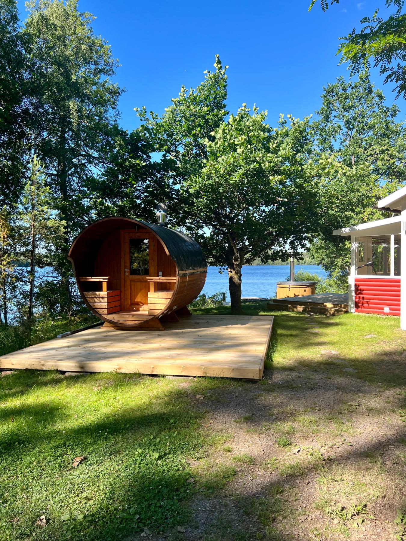 Möglichkeiten zur Freizeitgestaltung sind grenzenlos. Erkundet die malerischen Wanderwege mit einem schönen Picknick oder macht einen Bootsausflug auf dem See, um die Schönheit der Umgebung zu entdecken. Nutzt die Gelegenheit zum Angeln und fangt eigenen frischen Fisch für das Abendessen. Oder entspannt einfach am Ufer des Sees oder auf der großen Terrasse. Für entspannte Augenblicke legt einfach einen Wellnesstag ein mit der schönen Panoramasauna, Badetonne und herrlichen Liegen auf der Terrasse.