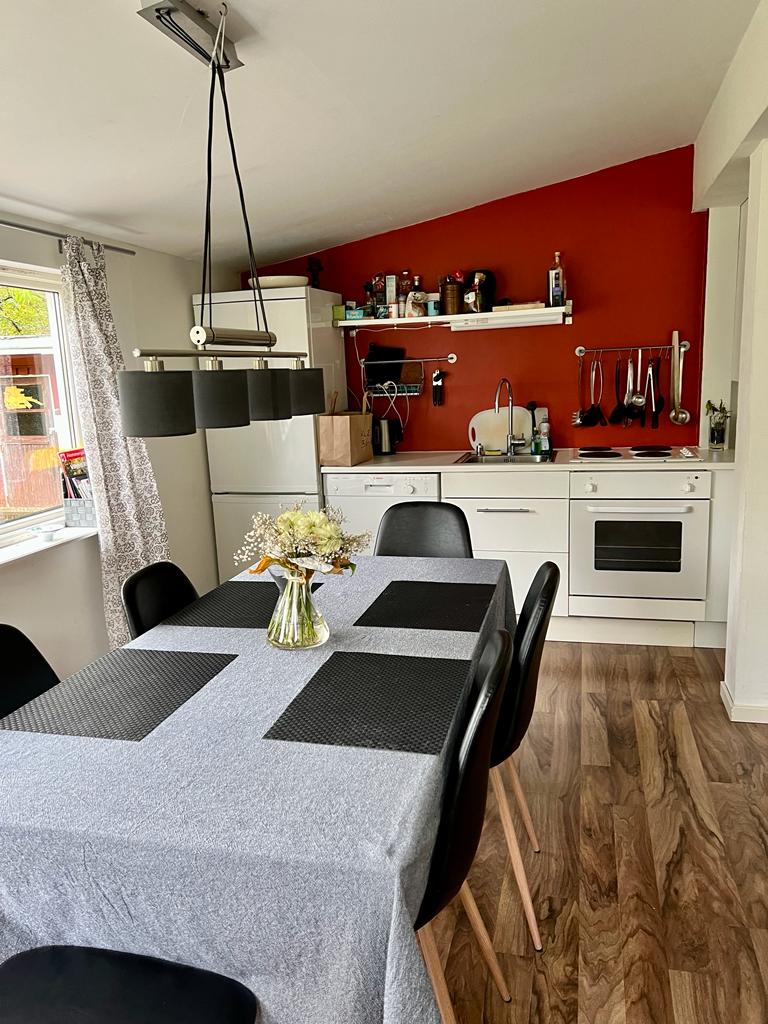 Ihr wohnt auf ca. 50 Quadratmetern mit Blick und direkten Zugang auf einen schönen See in ca. 50 Metern Entfernung mit eigenem Boot. Das Ferienhaus verfügt über eine ansprechende und frische Ausstattung. Kleine aber feine Extras wie Geschirrspüler und Waschmaschine sind mit integriert. Im Wohnzimmer befindet sich ein offerner Kamin, so dass auch die Winterabende rundum gemütlich und warm genossen werden können. Dazu gehört eine Küchenecke mit Esstisch mit allen notwendigen Geräten für den bequemen Selbsthaushalt.